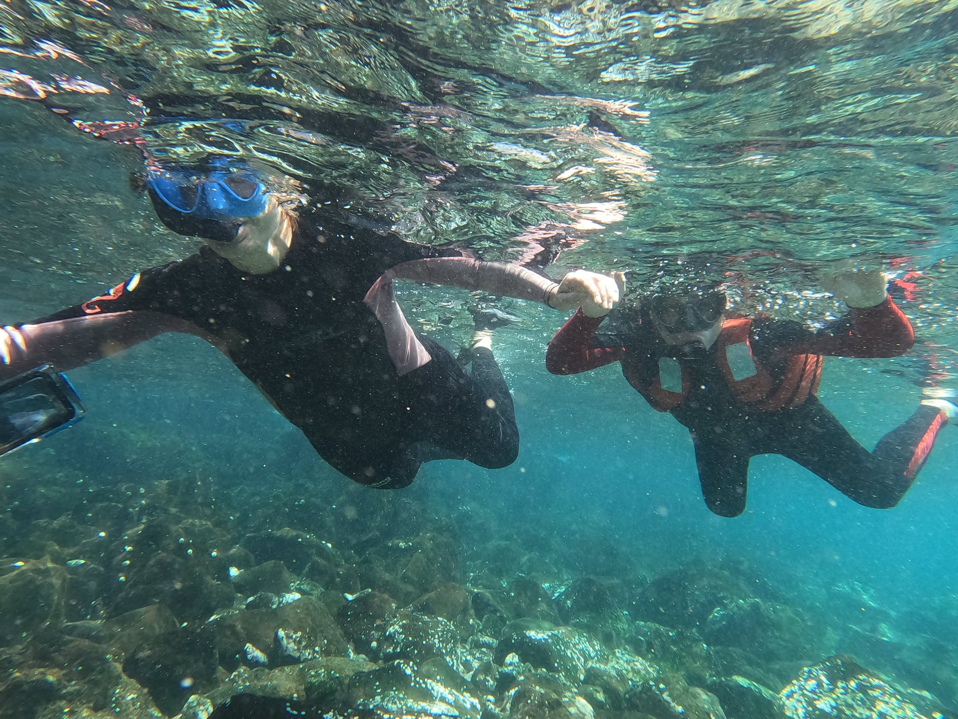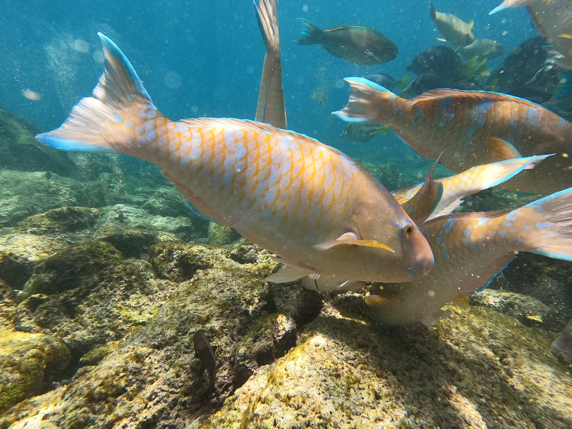 The departure is going to be at 8:00 am from Puerto Ayora Pier where our guests will embark on an amazing marine wildlife expedition on Pinzón Island. First, our guests spot at No Name Rock –“Roca Sin Nombre in Spanish”– where it is possible to snorkel next to the stunning hammerhead and Galápagos sharks, and other pelagic species, including rays and sea turtles. Then, snorkelers will spot at La Encañada in order to enjoy marine wildlife watching. So, it is possible to observe Galápagos snakes, marine turtles, sea lions, and marine iguanas. The last snorkeling spot is at Penguin Bay –“Bahía Pingüino in Spanish” –, this site gives to the travelers a great opportunity to see many sea lions, turtles, reef sharks, rays, fish and sometimes even the Penguins the bay is named for. As the tour is run by fisherman there is a short fishing time, and any fish caught are served as fresh sushini. The beach and whitest sand time is going to be at Palmita or La Fe (it depends the captain), both places offer beautiful rest and walking time. Hot and luscious lunch will be served in the boat cabin. Around 3:30pm departure to Puerto Ayora Pier.